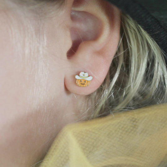 cowboy pumpkin stud earrings - fall Halloween stainless steel screwback earrings