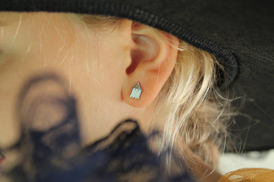 ghost witch stud earrings - Halloween stainless steel screwback earrings