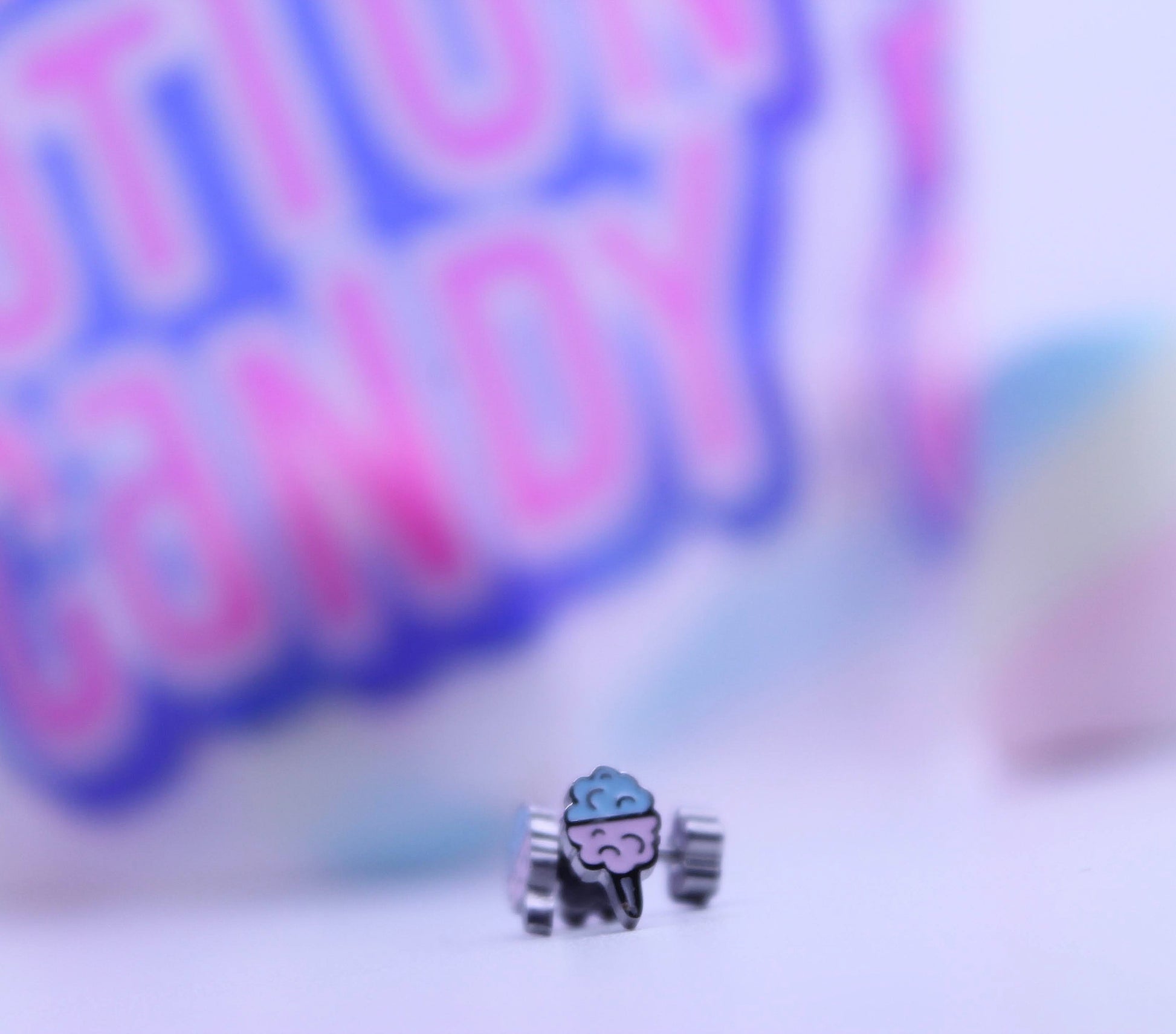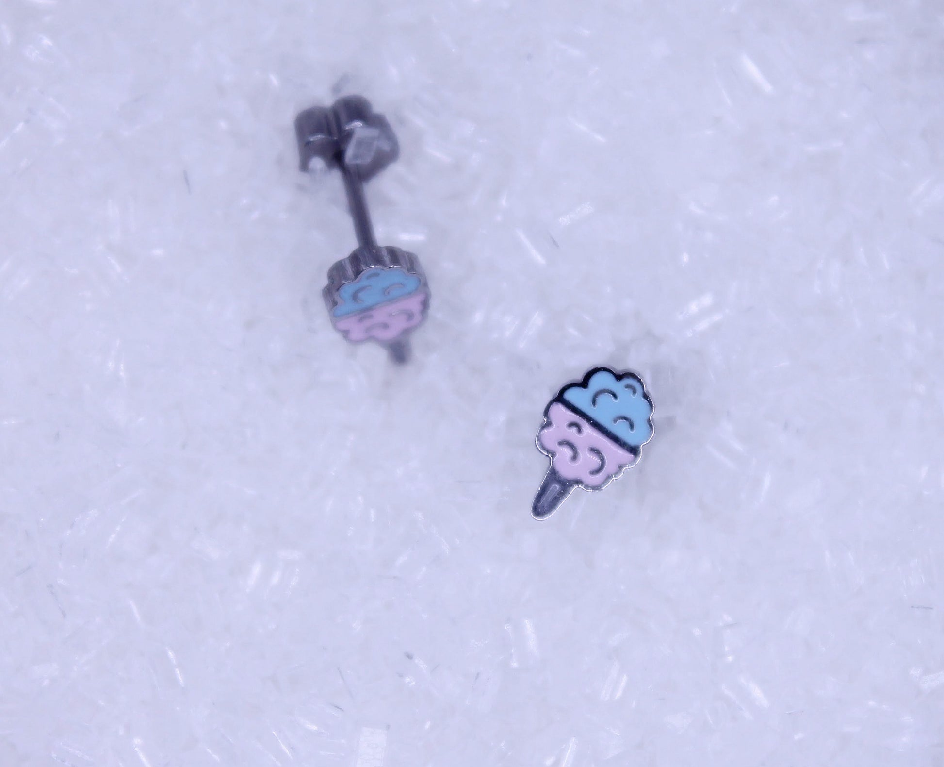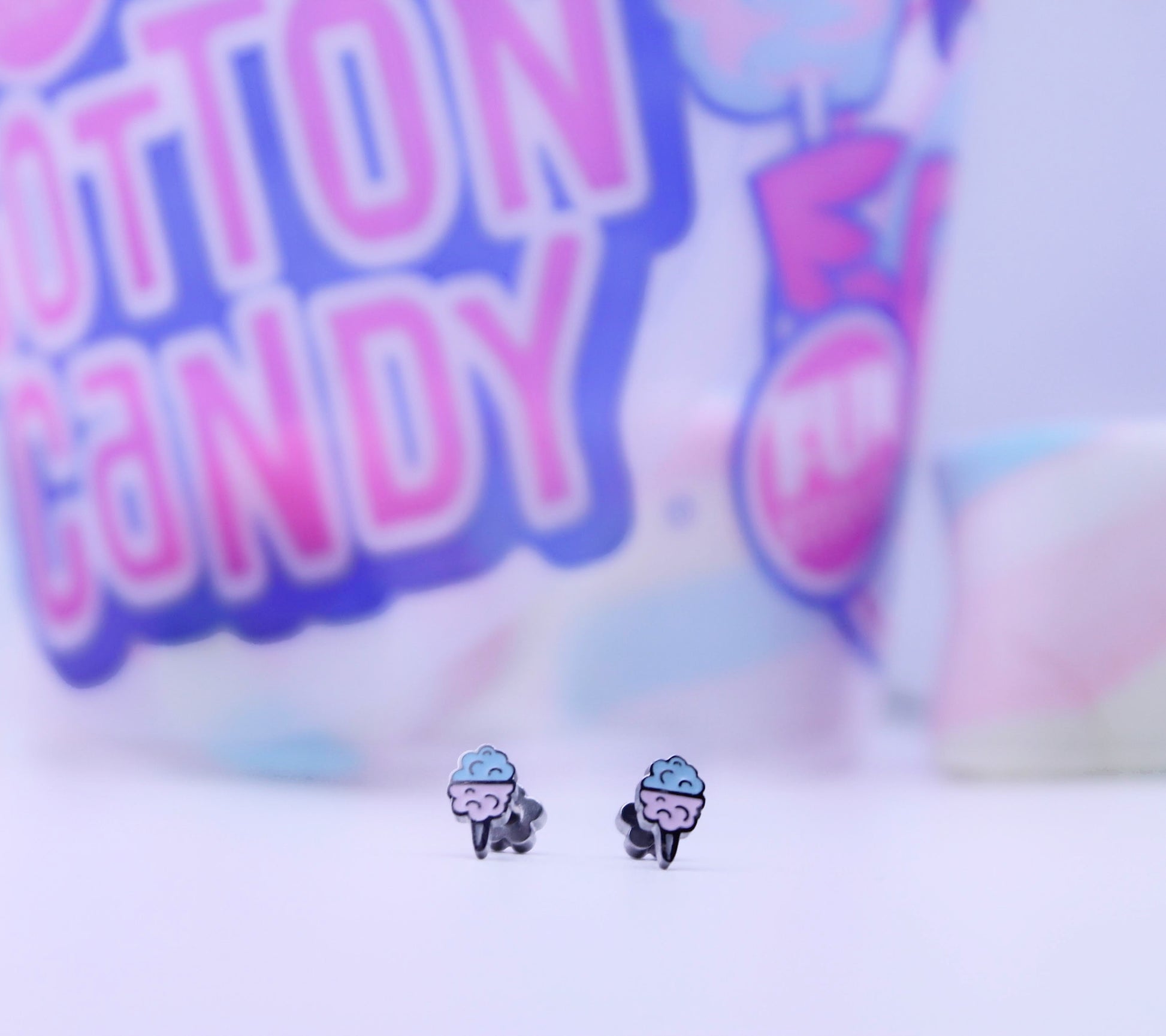 Cotton Candy stud earrings - dainty fair or circus stainless steel screwback earrings